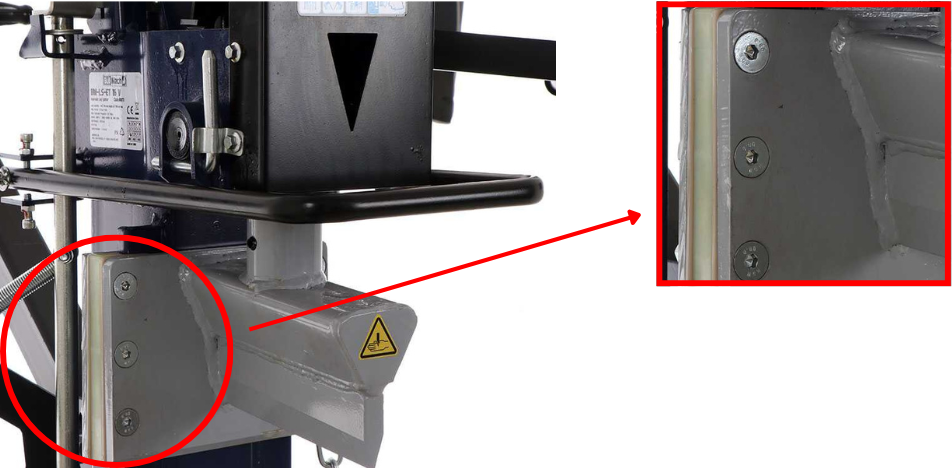 Antes de utilizar la leñadora, sobre todo si se trata de la primera puesta en marcha después de mucho tiempo, es fundamental realizar una comprobación exhaustiva de las guías de la cuña, es decir, los raíles por los que se desliza la cuña durante la fase de corte.