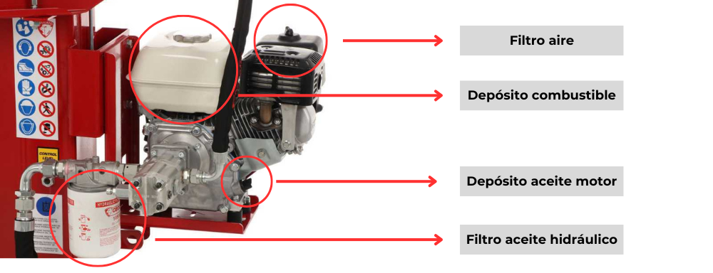 - Mantenimiento ordinario: durante el período de uso regular, es fundamental mantener la leñadora en buen estado mediante controles periódicos.